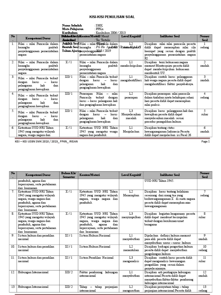 Kisi-Kisi Us Pkn Sd 2020 - Download Soal Usbn Pkn Smk Kurikulum 2006 Jawabanku Id - Lingkup materi yang tidak terdapat pada kompetensi dasar dalam permendikbud no.